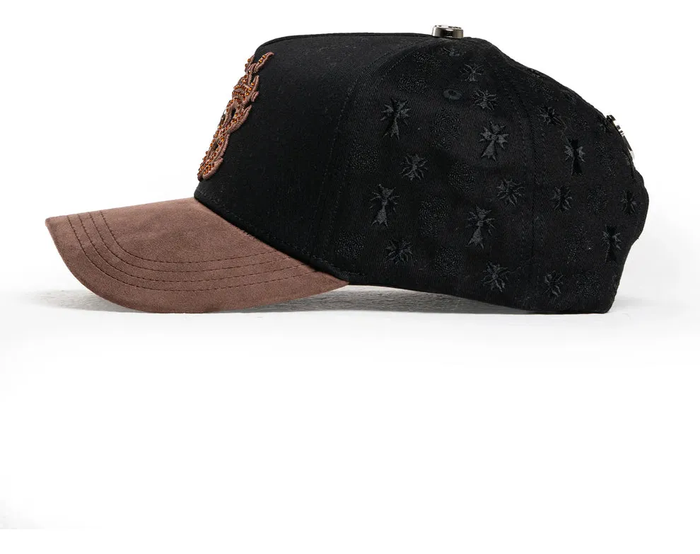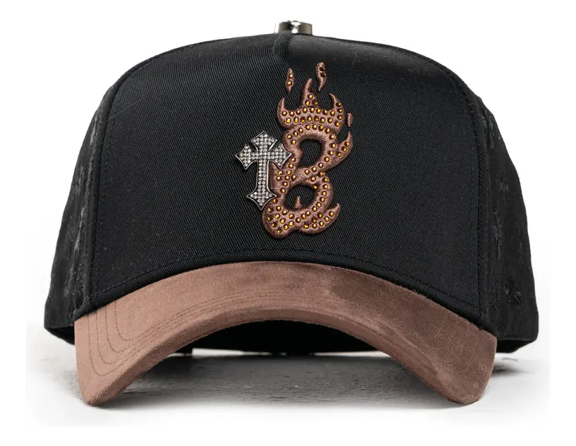 Una combinación elegante y urbana: esta gorra presenta cuerpo negro, visera en tono café y un bordado frontal con cruz y número en acabado metálico. Su diseño equilibrado mezcla lo clásico con lo urbano, ideal para looks casuales, streetwear o estilos más sobrios sin perder personalidad.