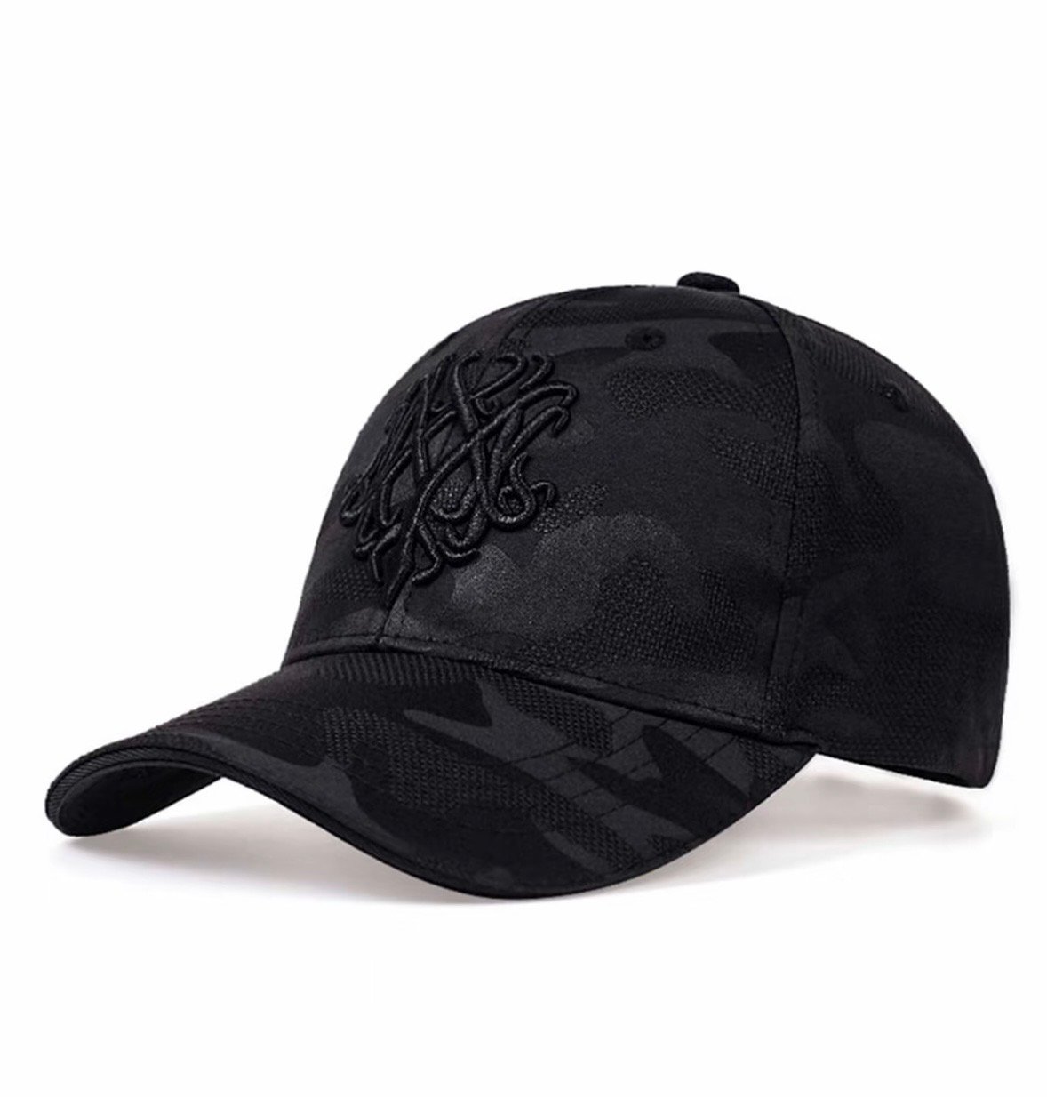 Gorra de estilo urbano con diseño camuflaje en negro sobre negro, ideal para quienes buscan un look limpio pero con detalle. El bordado frontal le da carácter sin ser exagerado, perfecta para outfits street, casuales o nocturnos. Ajuste cómodo y diseño versátil para uso diario.