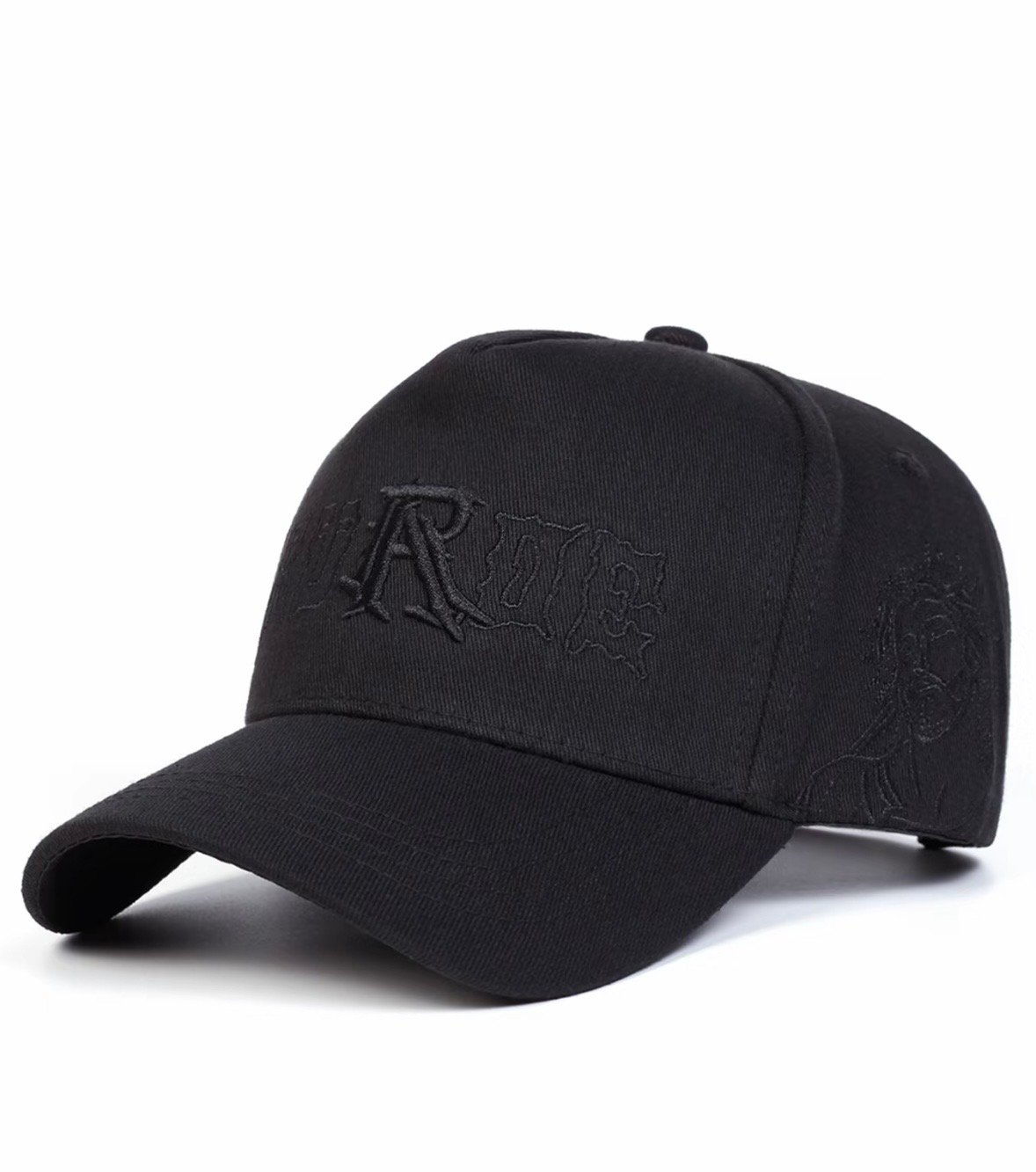 Gorra negra con bordado tono sobre tono. Minimalismo urbano premium.
